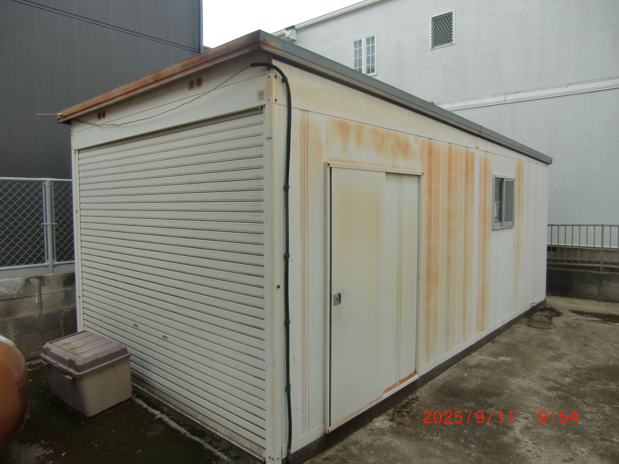 錆びが出ていた物置を二種類の塗料で塗装しました。